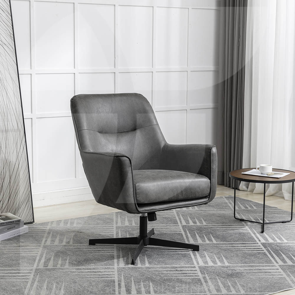 Immerse yourself in elegant relaxation with the Felicia swival chair. Experience the versatility of the swivel feature, allowing you to effortlessly rotate to suit your surroundings. The neutral tones of the leather feel fabric complement any interior styles, ensuring that this chair becomes a timeless focal point in any space.
